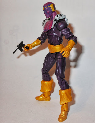 Su característica melena rubia esta muy bien realizada, pero lamentablemente el color de sus cejas no corresponde al mismo tono amarillo, y dependiendo de la copia que tengamos sus ojos azules están mejor o peor pintados. El casco está aceptablemente realizado, en gris metálico, pero las dos alas de los laterales no están niveladas y la izquierda está un poco más alta que la otra.