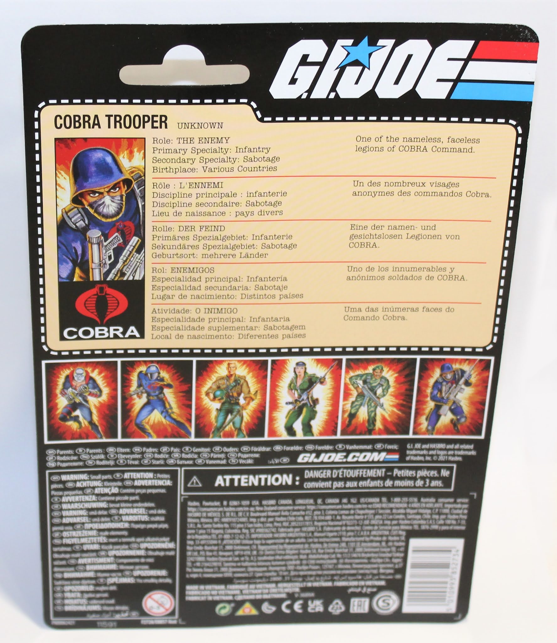 Siempre es bueno que Hasbro ponga en el mercado reediciones o nuevas versiones de troopers para nuestras colecciones, ya sean de Star Wars o, como es el caso, de G.I. Joe. Tener en las tiendas nuevos Cobra Troopers para engrandecer nuestras armadas de la organización terrorista (y en nuestra escala predilecta, claro) es estupendo (además de Cobra Officers, que veremos pronto en el blog!) pese a que la figura tiene algunas características que nos dan que pensar que podría haber sido un mejor producto.